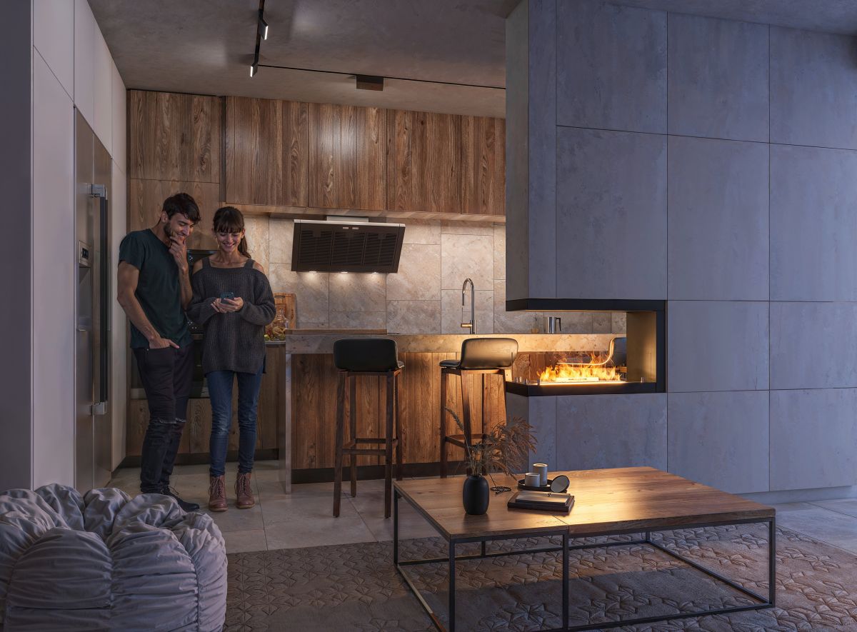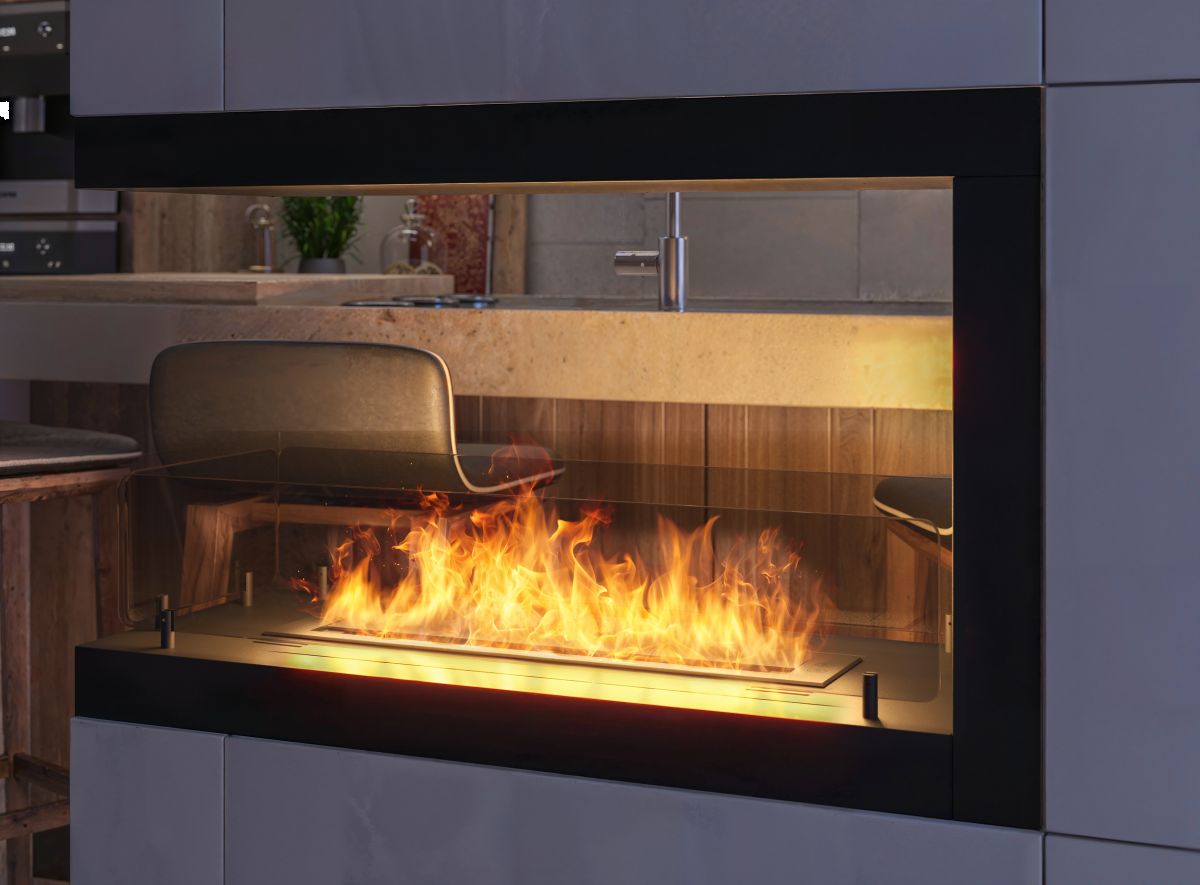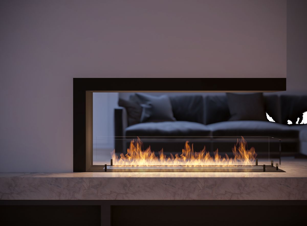 Infire Inside U is a three-sided, frame-based, built-in biofireplace. An impressive biofireplace that is easy and safe to embed in an existing structure. The 60 mm thick frame structure creates a wonderful frame for a live fire. A modern and elegant biofireplace solution for every location. Available in widths of 800, 1000 and 1200 mm. You can choose the 1000 mm wide version with either a 500 mm or 800 mm bioburner.