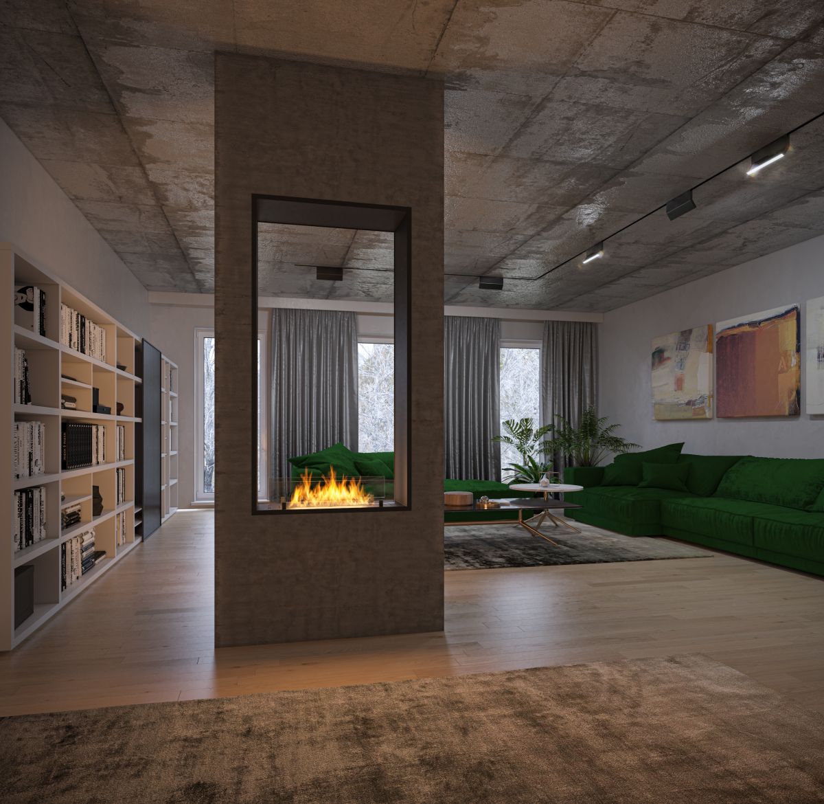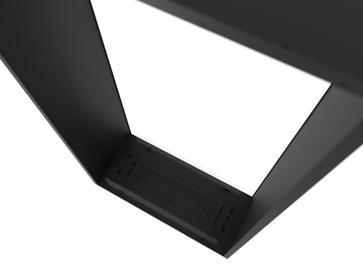 The integrated, double-sided biofireplace is the perfect choice when you want to build a unique and impressive biofireplace that you can use in two spaces at the same time. The narrow and uniform, all-black structure and stylized narrow frame design provide safety and the atmosphere of a real fire without a chimney. A stylish and long-lasting choice for home or public spaces.