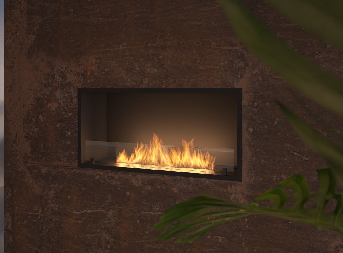 Infire's luxurious built-in biofireplace is a striking, open-on-one-side biofireplace that is easy and safe to install in an existing structure. The Slim Inside series' narrow, only 300 mm structure and uniform, all-black color make it an excellent, elegant biofireplace solution for any location. The narrow frame structure completes the carefully finished look. Available widths are 800mm, 1000mm, 1200mm, 1500mm and 2000mm.