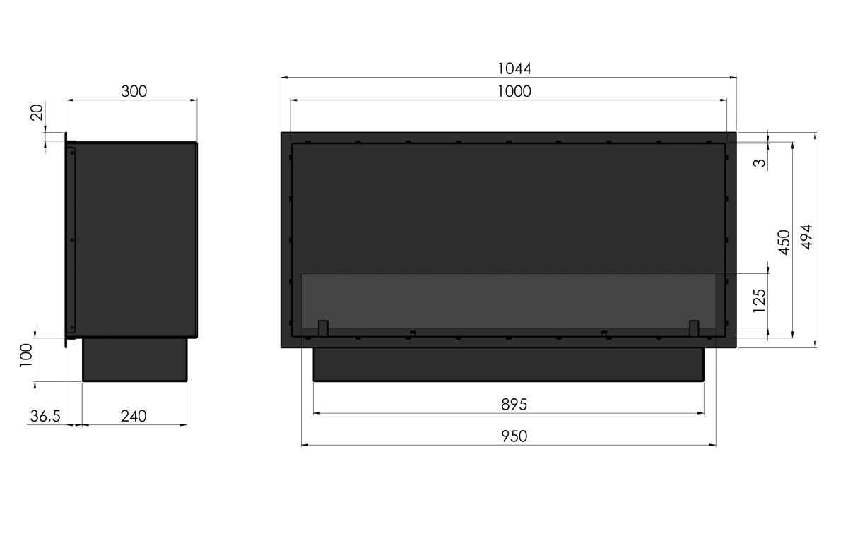 - Installation method: recessed into the structure, installation opening dimensions: 1010x560x310 mm