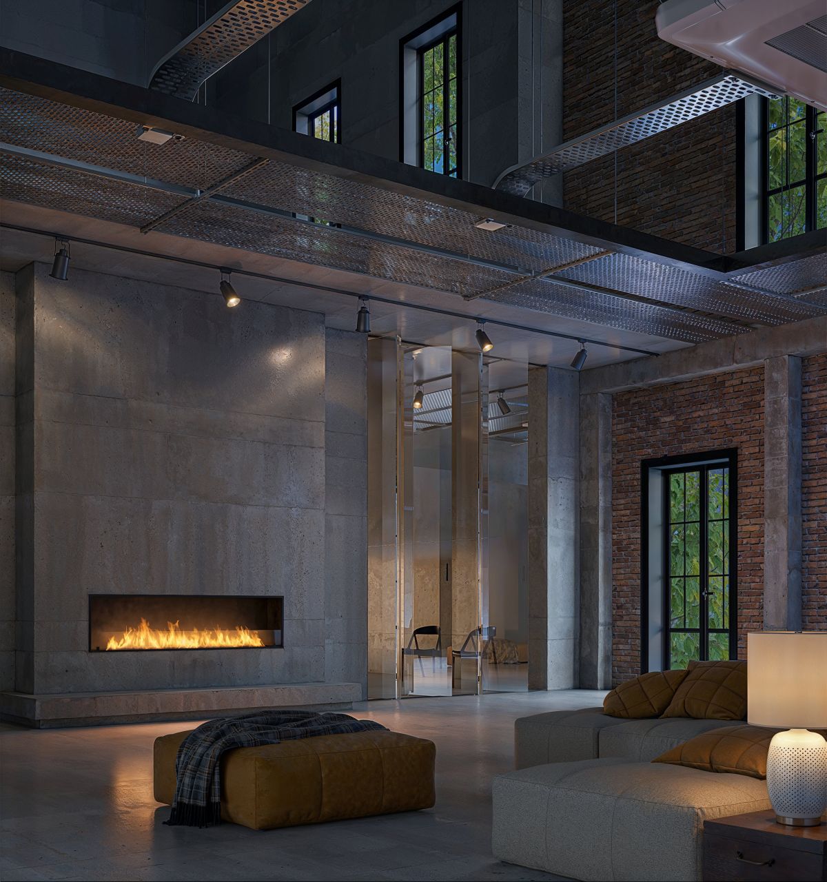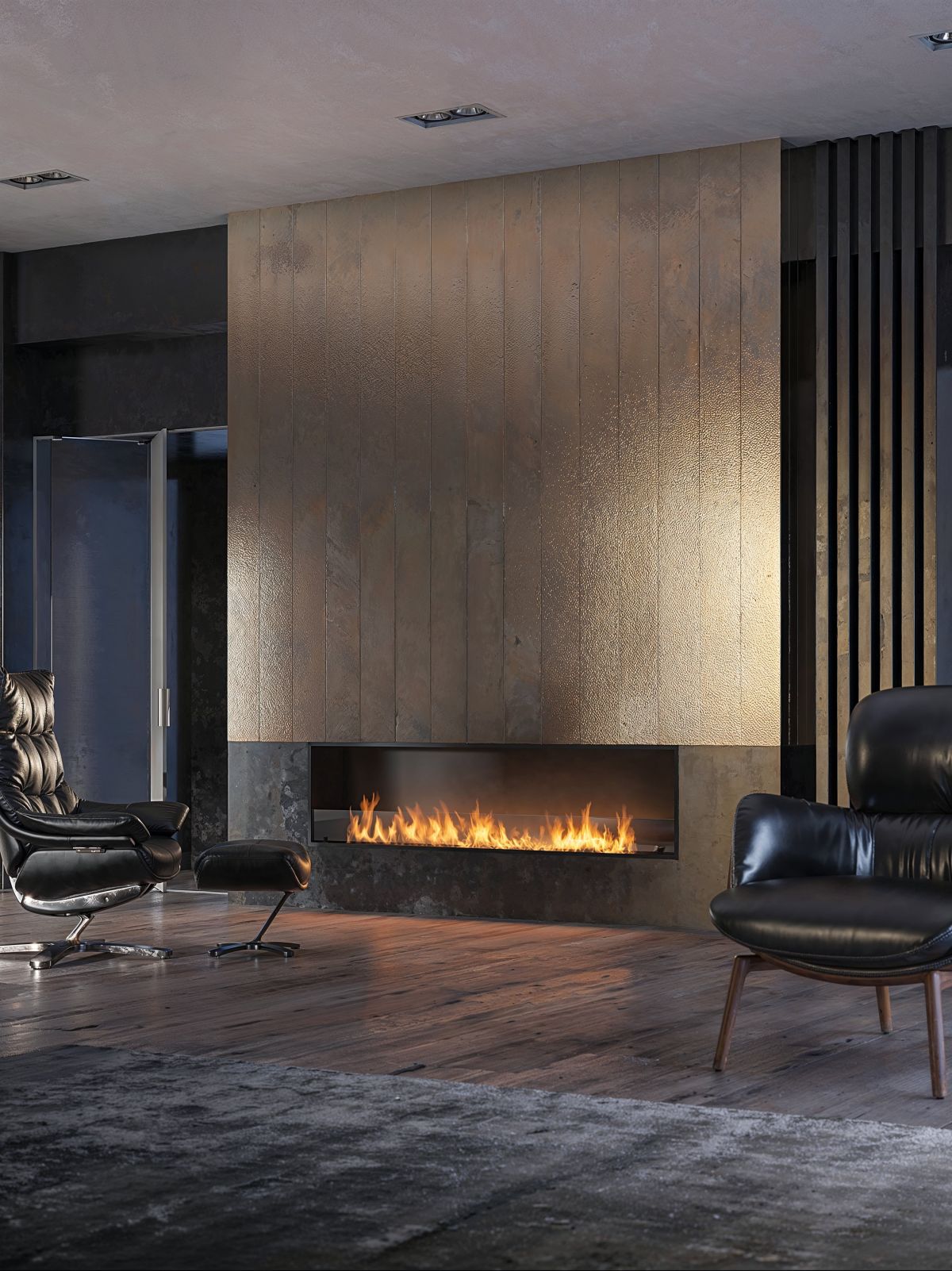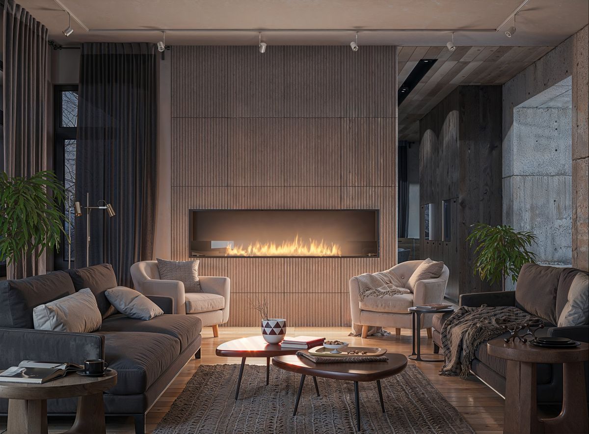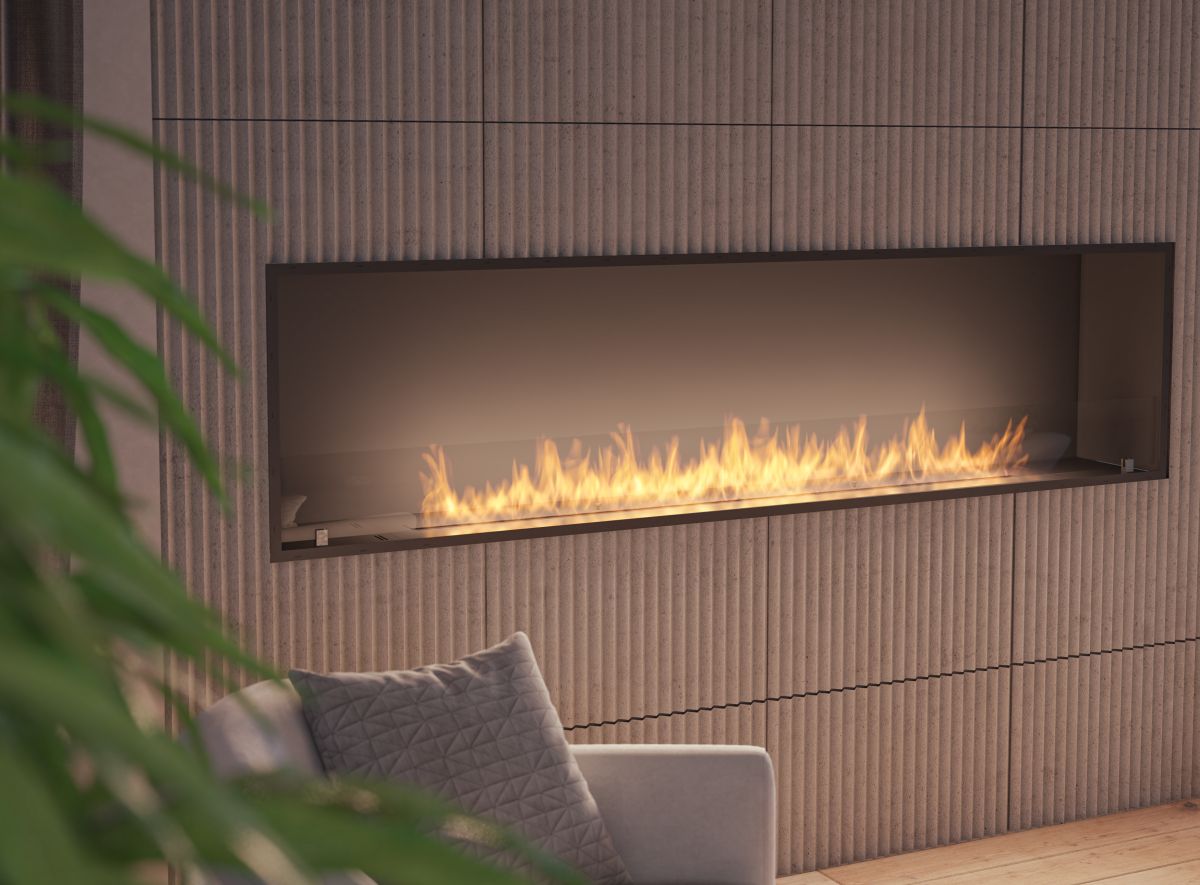 Luxurious, built-in biofireplace with a narrow design