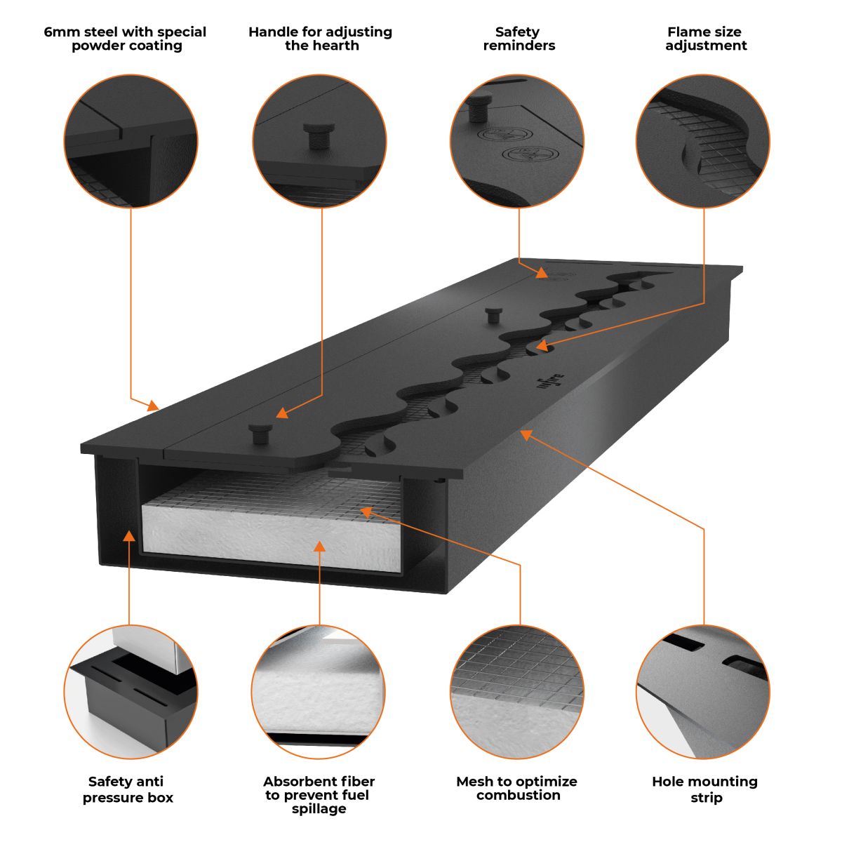 Infire has a wide range of high-quality, TÜV-approved bioethanol burners and fireplaces. The bioethanol burners have a unique design that sets them apart from all other brands, creating a unique, three-dimensional flame effect.
