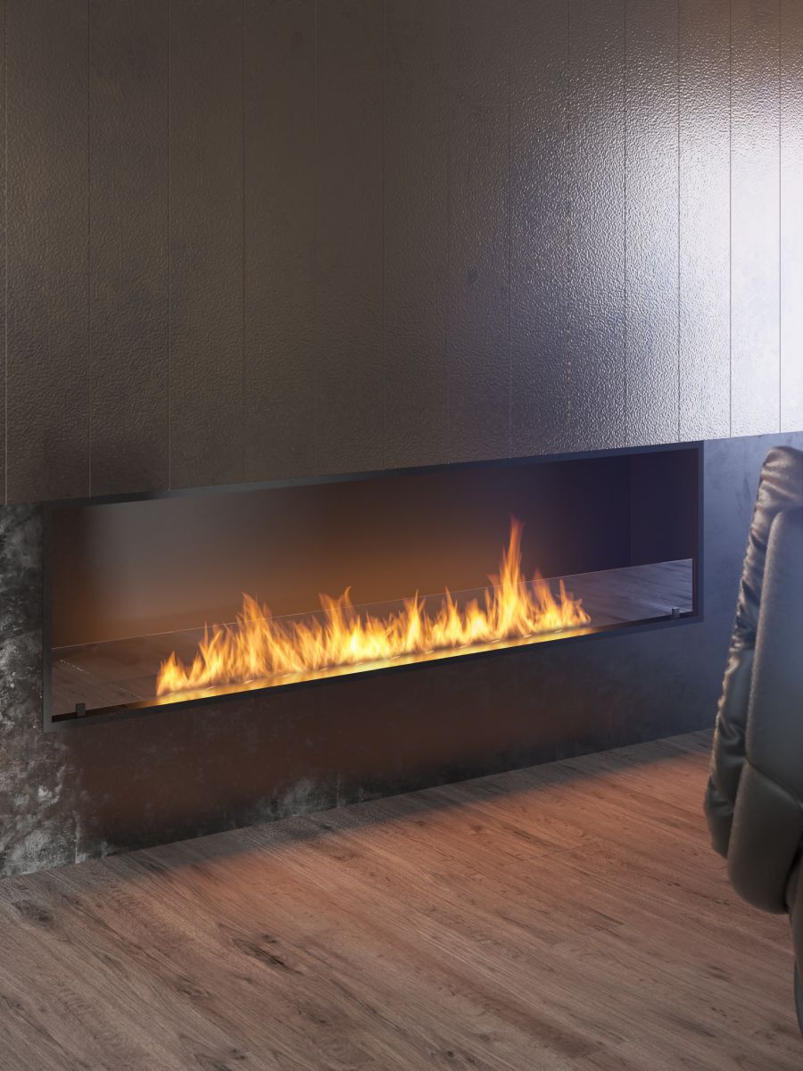 Infire's luxurious built-in biofireplace is a striking, open-on-one-side biofireplace that is easy and safe to install in an existing structure. The Slim Inside series' narrow, only 300 mm structure and uniform, all-black color make it an excellent, elegant biofireplace solution for any location. The narrow frame structure completes the carefully finished look. Available widths are 800mm, 1000mm, 1200mm, 1500mm and 2000mm.