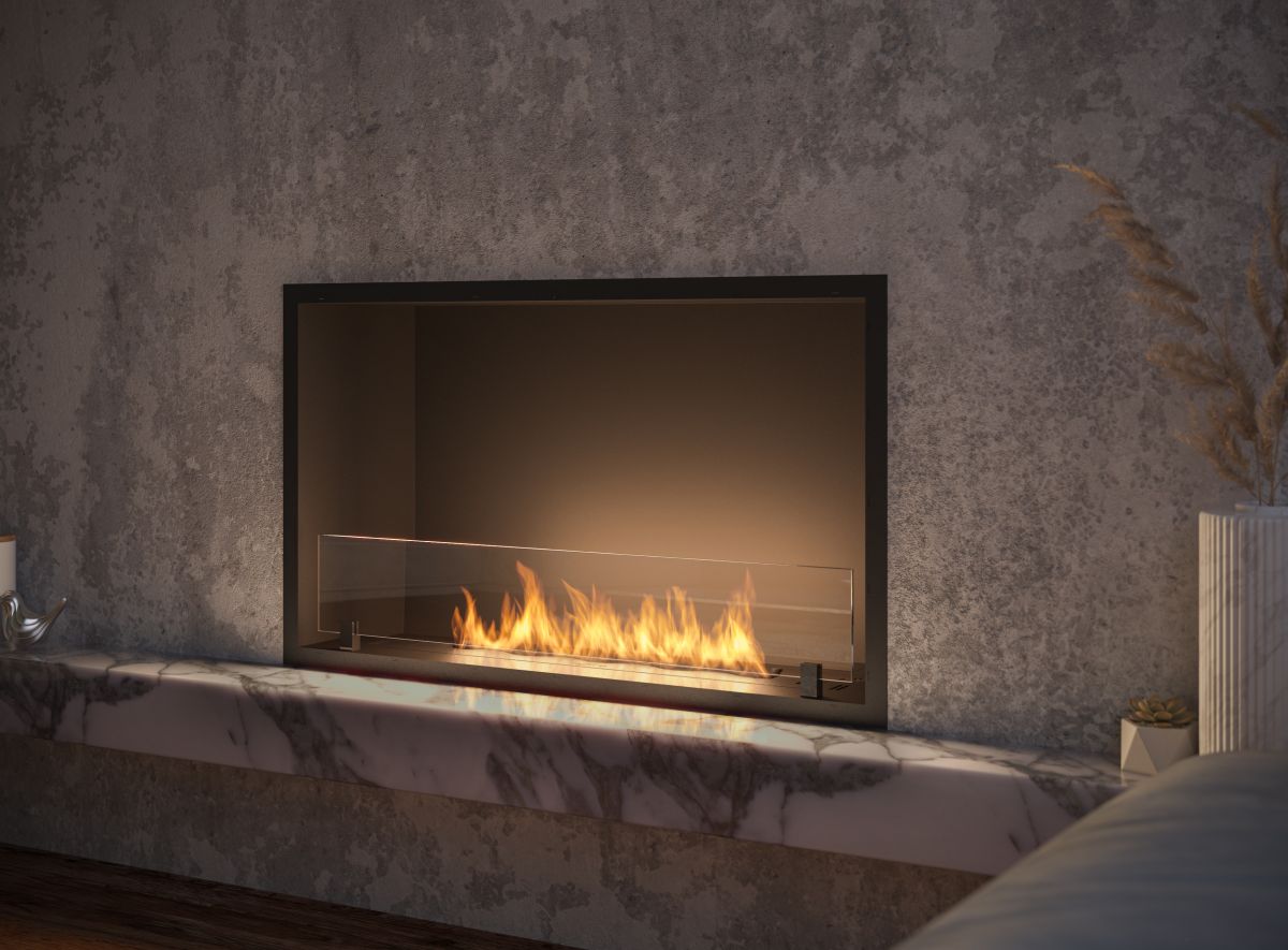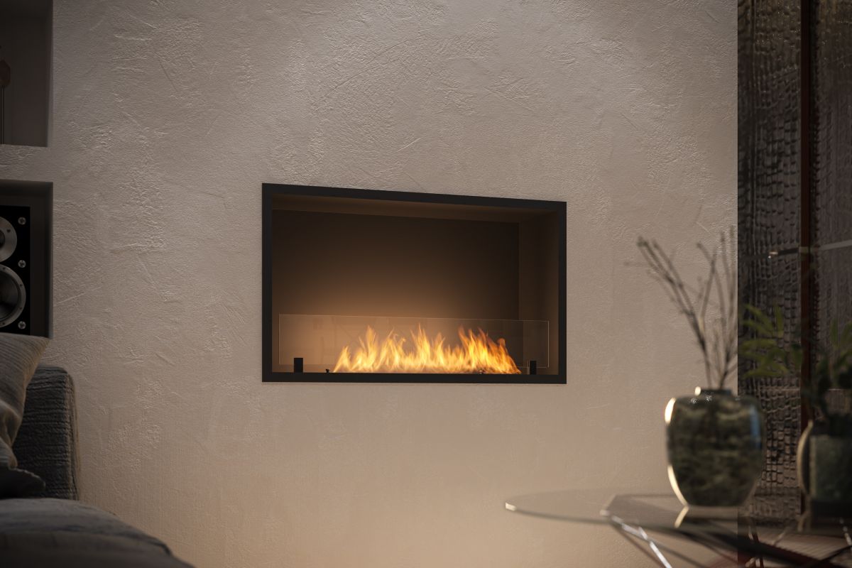 An integrated biofireplace is the perfect choice when you want to build a unique and impressive biofireplace. The narrow and uniform, all-black structure and stylized narrow frame model provide safety and the atmosphere of a real fire without a chimney. A stylish and long-lasting choice for home or public spaces.