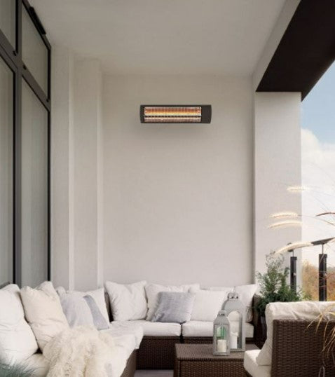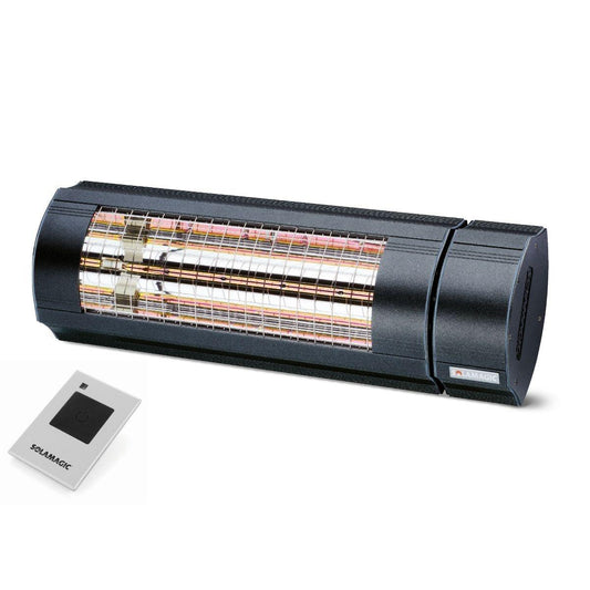 Solamagic AIR+ and Etherma EXO DARK glass patio heaters also heat the entire air mass in the glazed space, which makes the heat soft and pleasant because the heat is distributed more evenly in the space protected by the glazing and the wind cannot carry it away.