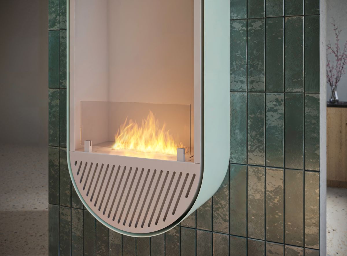 A stylish, oval-shaped, wall-mounted biofireplace, in your own color!
