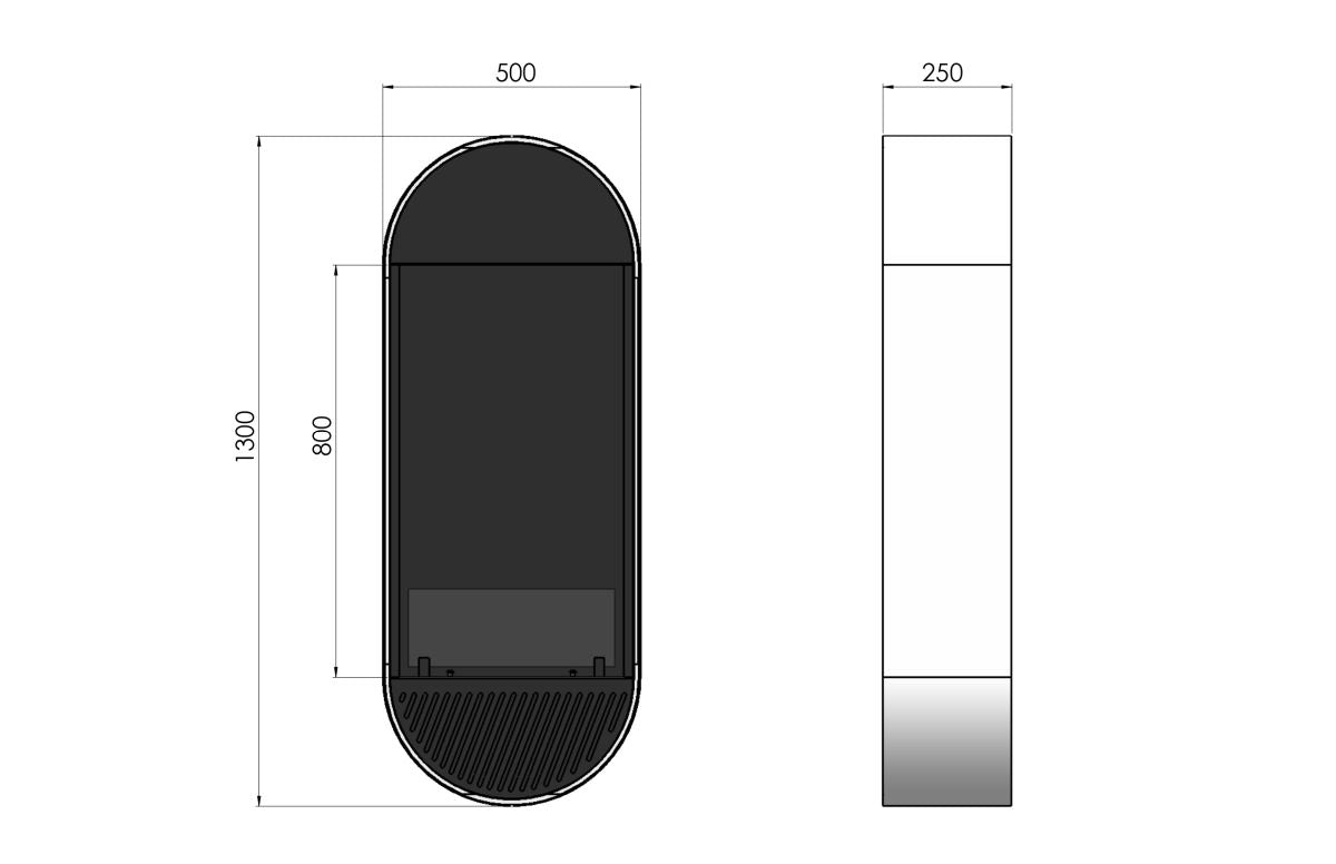 The wall-mounted, oval biofireplace is the perfect choice when you want a unique and impressive biofireplace! Decide on the color of the outer shell of the biofireplace yourself from the RAL color chart and you will have one more great story to tell your guests! Choose an all-black or all-white interior and we will call you to choose the desired outer shell color!