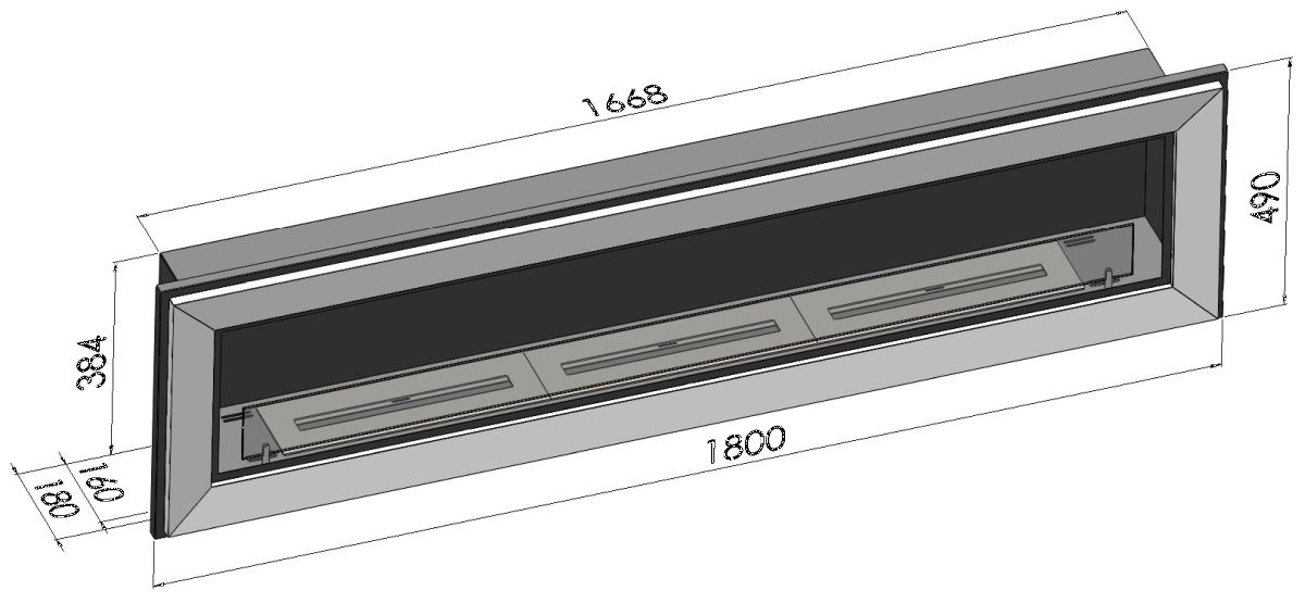- Installation opening: width 1680 x height 400 x depth 170 mm