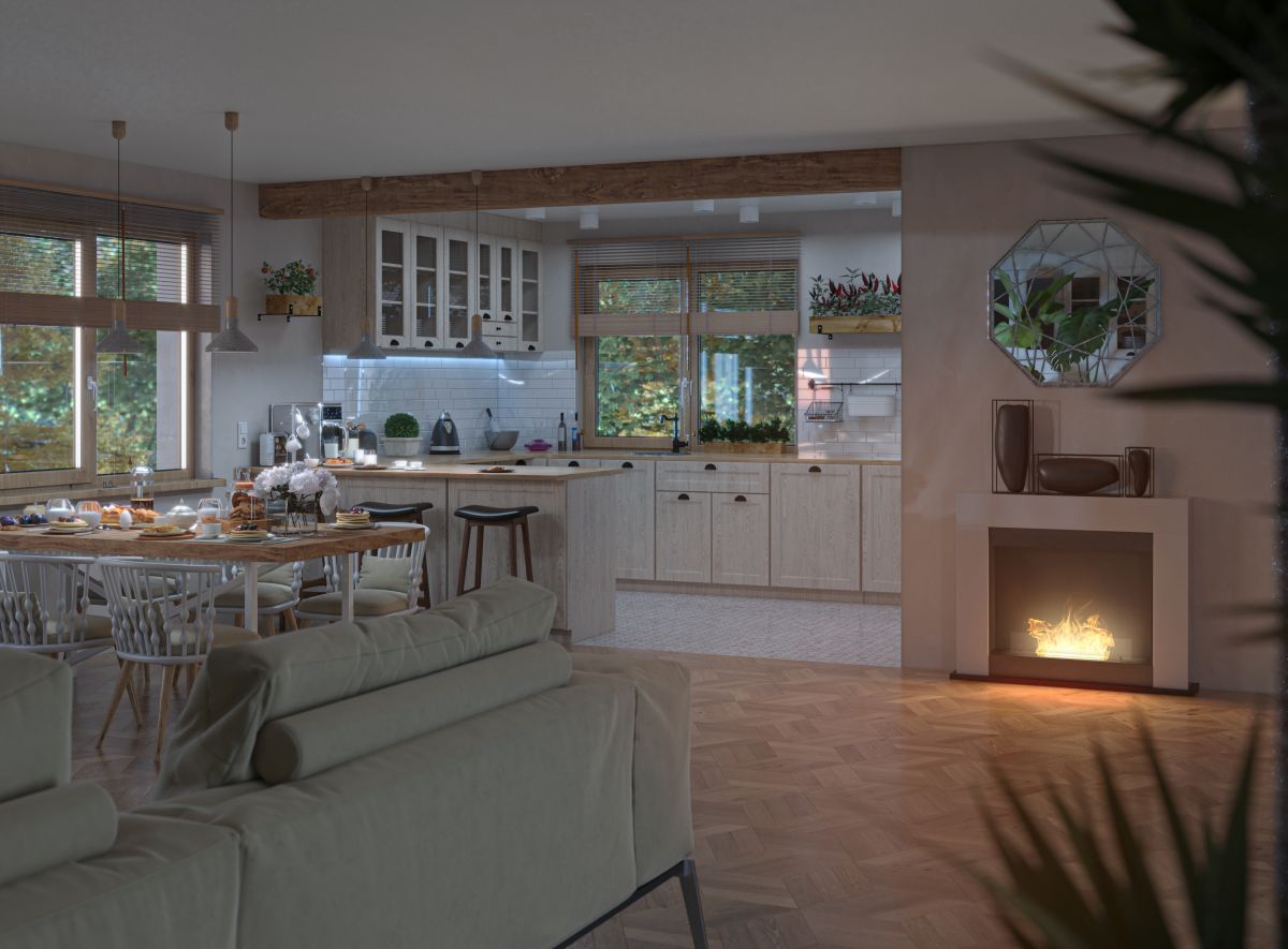 - Design: classic and simple fireplace design creates a peaceful and warm atmosphere in the space