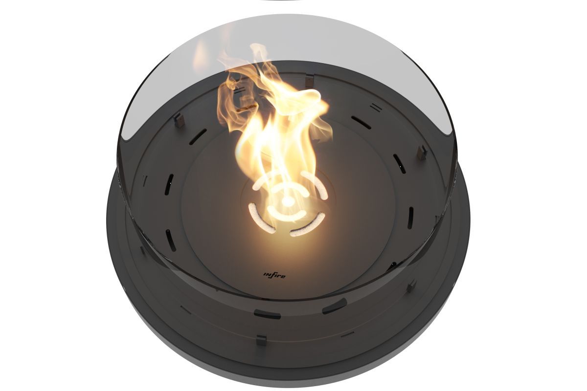 Infire-sarjan biopoltin on kehittynyt, mustaksi pulverimaalattu poltin, jonka keraaminen kuituosa ja suojaverkko tekevät käytöstä entistä turvallisempaa ja samalla optimoivat palamisprosessin – liekki palaa tasaisesti ja pitkään. Liukusäädin antaa mahdollisuuden hallita liekin kokoa ja sammuttaa takka turvallisesti.