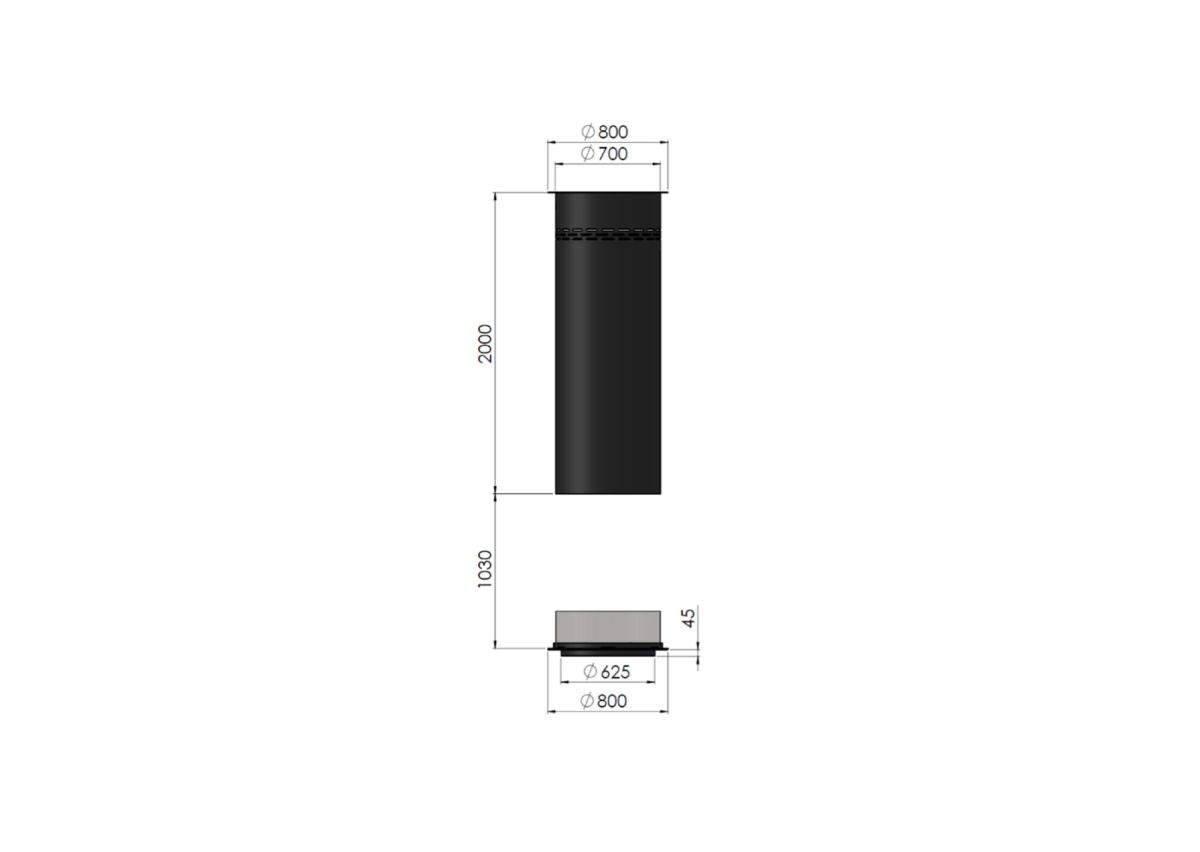 - yläosa: halkaisija 800 mm x korkeus 2000 mm, yläosan pituutta voidaan modifioida toiveesi mukaisesti