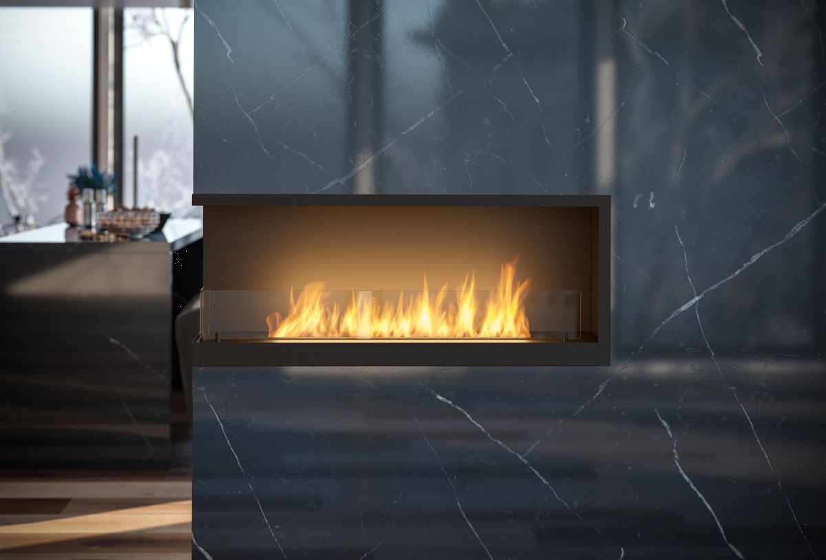 Infire Inside 1100 L/P Versio 2 on kahdelta sivultaan avoin, sirolla kehyksellä varustettu, kulmaukseen sisäänrakennettava biotakka. Näyttävä biotulisija, joka on helppo ja turvallinen upottaa olemassa olevaan rakenteeseen. Kehysrakenne luo upean kehyksen elävälle tulelle. Moderni ja elegantti biotakkaratkaisu jokaiseen kohteeseen. Saatavilla leveydet 800 ja 1100 mm:ä