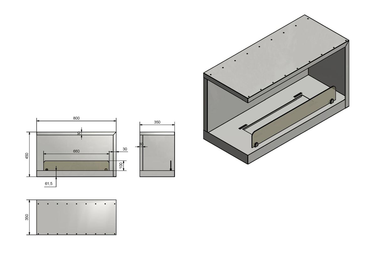 - Mitat: leveys 800 mm x korkeus 450 mm x syvyys 350 mm (kts. mittapiirrokset tuotekuvista)